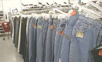 女性用ジーンズ。$1.99(\160)から。一番手前に写っているのは$5.99(\480)と少し高め。