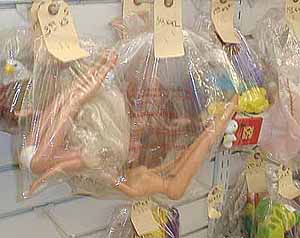 左:裸のバービーちゃん$3.99(\320)。服はどこに?