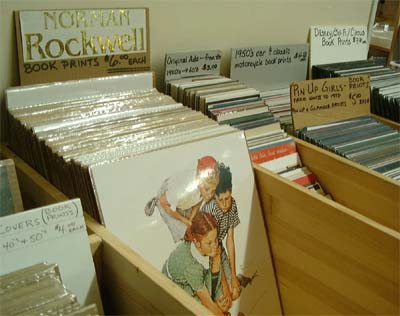 | 50年代のポスターや雑誌の広告などが売られています。コカコーラものなどのコレクターズアイテムは多少高めですが、それ以外のものは数百円からあります。こういうノスタルジックなポスターを飾っているカフェなどを良く見かけます。 |