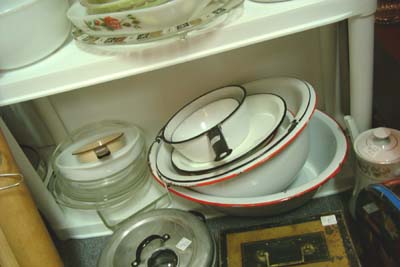 | ひっそり見逃しがちな足元にもお宝が潜んでいるかも?しっかりチェック。白いホーローは、どんなキッチンにも合いますね。 |
