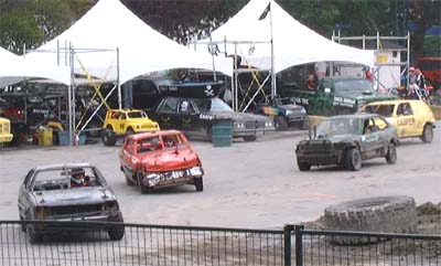 爆音とどろかせて登場するのが、こんな風体の車たち。車体をどんなににぶつけても気にしなくて良いのであれば私もトライしてみたいかも?