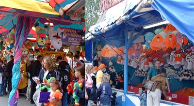 会場となるヘイスティングス・パークは競馬場やホッケー会場、スケートボードパークをはじめ様々な施設のある非常に大きな公園ですが、中でも目を引くのが遊園地「プレイランド」。遊園地はフェアに関係なく夏の間は営業していますが、フェア開催時は遊園地のフェア会場の一部になるので、いつもに増して大人気。バンクーバー地域で唯一の遊園地ということもあり、絶叫モノがフェア気分を盛り上げてくれます。他にも子供の好きなマッドマウスや空中ブランコなどのお決まりのライドをはじめ、シューティングやビリヤードなどで賞品のヌイグルミをゲットするアーケード・ゲームも子供たちに大人気です。この賞品の巨大ヌイグルミの系統もその年の人気によって少しづつ変わります。今年は「ファインディング・ニモ」が新入りのよう。