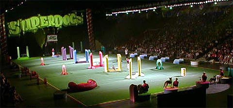 そして家族連れに一番人気があるのが「スーパードッグ」と呼ばれるドッグショー。スーパードッグと言っても特別の能力のある犬が出てくるわけでも、どの犬が一番かを競うわけでもなく、飼い主ご自慢の犬たちが会場の西側と東側に分かれ、走ったりフリスビーをキャッチしたりするいう単純なものなのですが、これもまたドッグショーのエキスパートにかかれば観客参加型の一大エンターテイメントショーになってしまいます。また猟犬から、大型犬、かわいい小型犬までさまざまな犬が愛嬌を振りまいてくれるので、犬好きにはたまりません。ショーが終わるとそれぞれの飼主と話をしたり、犬をなでにゆくこともできます。主催がペットフード会社「Eukanuba」ということもあり、ペット用品の販売もありました。